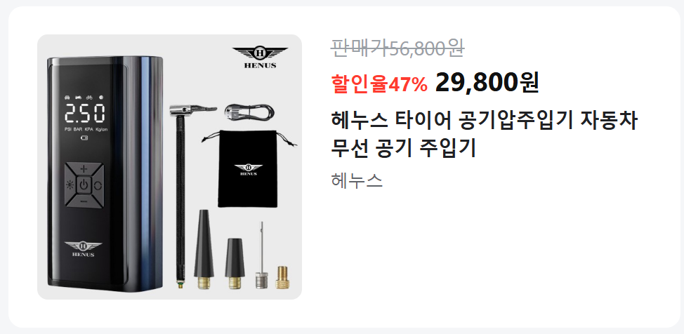 타이어 공기압은 그때그때 체크하고 넣어주는 게 편합니다. 주유소 갈 필요도 없이요. 아래와 같은 제품을 상비용으로 가지고 다니면 편할 거 같더라구요. 눌러서 확인 가능합니다.